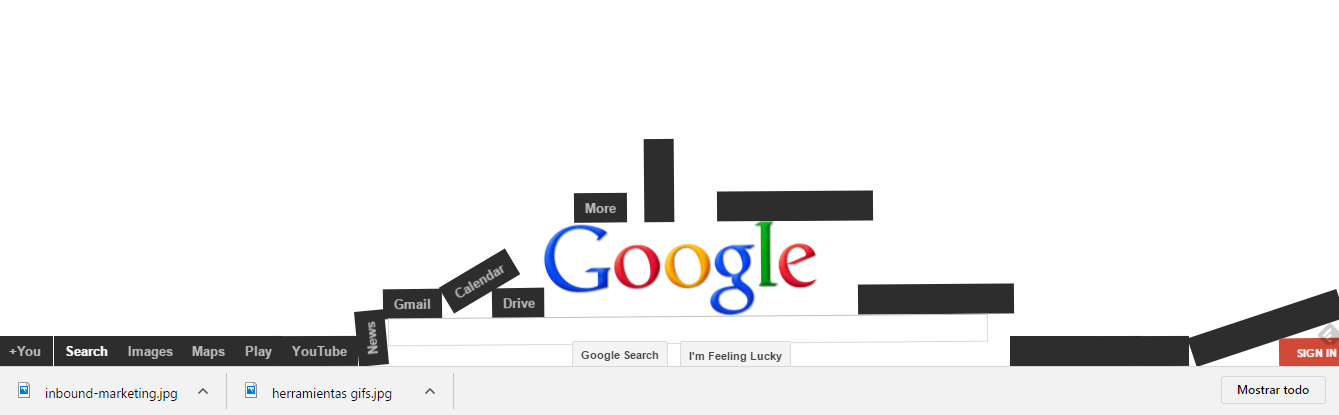 7.- Si pones «Google gravity» y pinchas el primer resultado, la página empieza a descomponerse y se cae.