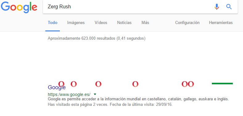 6.- Al introducir «Zerg Rush» aparecen en la página círculos a los que podrás disparar. Tienes que ser más rápido que ellos porque sino la página irá desapareciendo y finalmente mostrará dos G de círculos y la página borrada