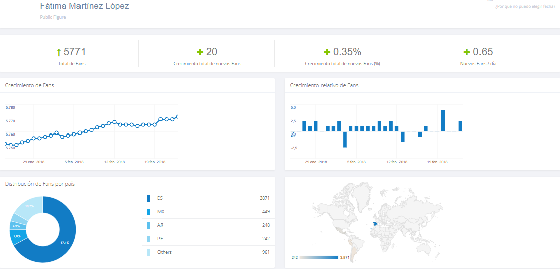 También evalúa el compromiso de los usuarios con la página con el Total Me Gusta, Gente hablando de esto y tasa de participación