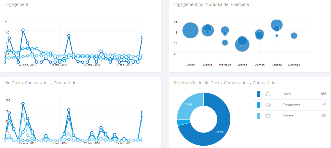 Lo mejor de la herramienta es que tarda segundos en mostrarnos todos los datos en un informe muy visual, que podremos utilizar para presentar a nuestros clientes y nos facilita métricas sobre engagement.