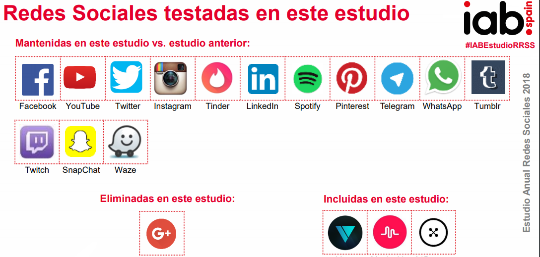 - Por primera vez se excluye del Estudio Google +y se incluyen nuevas redes como Musica.ly, Vero y 21 Buttons