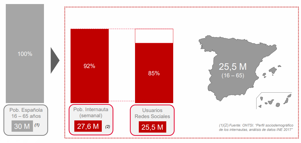 - Un 85% de los internautas de 16-65 años utilizan Redes Sociales, lo que representa más de 25.5 millones de usuarios