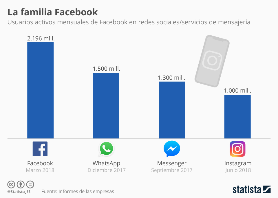 Con los últimos datos proporcionados por Instagram la semana pasada, el gigante creado por Mark Zuckerberg supera entre Facebook, WhatsApp, Instagram y Messenger los 6.000 Millones de cuentas activas mensuales.
